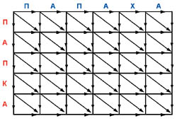 отбрасыванием последней буквы. Для оптимального выравнивания возможны ровно три альтернативы: