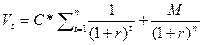 1) Формула расчета текущей стоимости привилегированных акций может быть рассчитано по формуле: , где С – одинаковые выплаты по годам, t – количество лет, r – требуемая доходность, М – номинал акции:
