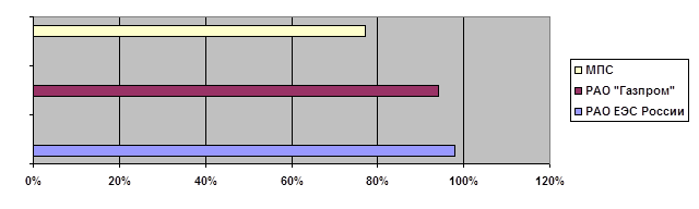 Рисунок 1. Доли национального рынка, контролируемые крупнейшими естественными монополиями России.