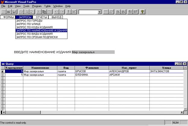 Рисунок 11- Вспомогательный запрос «Запрос по наименованию издания»