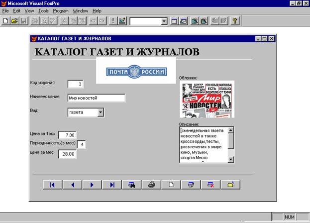 Основная форма «Каталог газет и журналов» иллюстрирована на рисунке 5