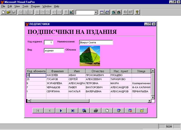 Основная форма «Подписчики на издания» показана на рисунке 7
