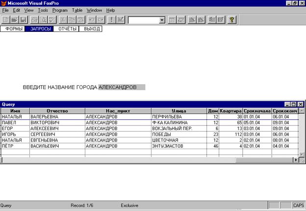 Основной запрос «Запрос по городу» иллюстрирован на рисунке 8