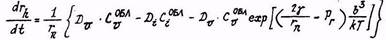 Первое слагаемое в правой части (24) характеризует скорость присоединения вакансий, второе - межузельных атомов, третье - скорость термического испарения вакансий из поры; g