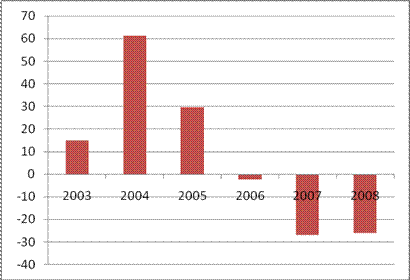 Также я укрепила в себе знания по статистике, используя в практической части моей работы методы статистики. Использовав графики, диаграммы и таблицы наглядно и доступно показала положение дел и попыталась создать целостную картину развития науки в период 2003-2009 годов, выявив тенденции развития рынка инновационной деятельности в нашей стране.