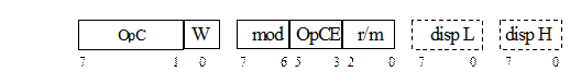Рассмотрим назначение и работу отдельных узлов микропроцессора Intel 8086. В нем имеется четырнадцать 16-разрядных регистров, которые по своему назначению можно разделить на три группы (рис. 1.1, б). Регистры АХ, ВХ, СХ, DX образуют группу регистров общего назначения (РОН). Эти регистры могут без ограничений участвовать в выполнении арифметических и логических операций. Некоторые другие операции, например операции над цепочками байтов и слов, предписывают регистрам данной группы специальное использование: АХ - аккумулятор, ВХ - база, СХ - счетчик, DX - данные. В отличие от регистров других групп РОН обладают свойством раздельной адресации старших и младших байтов. Поэтому РОН можно рассматривать как совокупность двух наборов 8-разрядных регистров: набора Н, содержащего АН, ВН, СН, DH, и набора L, содержащего AL, BL, CL, DL. Регистры всех других групп являются неделимыми и оперируют 16-разрядными словами, даже в случае использования только старшего или младшего байта.