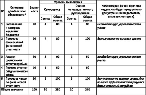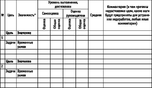 * Значимость цели определяется непосредственным руководителем по шкале от 1 до 100. Общая значимость всех целей в сумме со. ставляет 100. Достижение каждой цели оценивается от 1 до 5 баллов по следующей шкале: