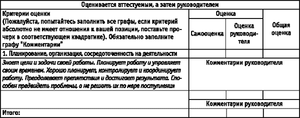 (оценочные листы заполняются сотрудником и руководителем)