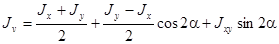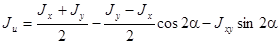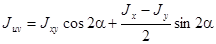 При этом значении угла a один из осевых моментов будет наибольшим, а другой — наименьшим. Одновременно центробежный момент инерцииJuv
