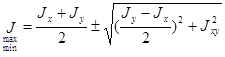 Верхний знак соответствует максимальному моменту инерции, а нижний — минимальному. После того как сечение вычерчено в масштабе и на чертеже показано положение главных осей, нетрудно установить, которой из двух осей соответствует максимальный и которой — минимальный момент инерции.