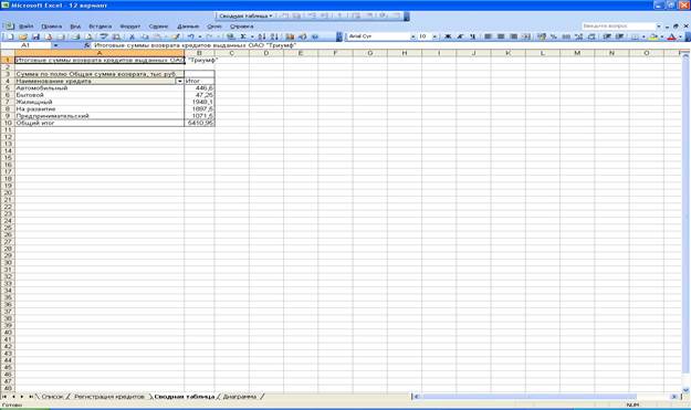 рис.4. Сводная таблица ОАО «Триумф»
