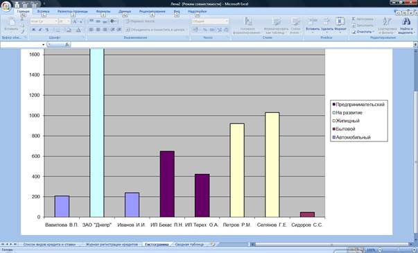 4. Построить гистограмму по данным сводной таблицы