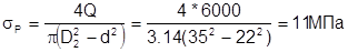где Q=6000Н – усилие сжатия.