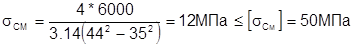 Необходимую высоту штыря h находим из условия прочности рабочих поверхностей на смятие. Из [1] это условие выглядит так