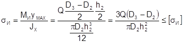 Допускаемое давление для выбранного сочетания материалов [1] – [q]=5 МПа.