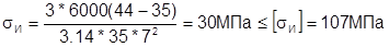 ]=60МПа – максимальное допускаемое напряжение [1]. Подставляя значения в формулу (28), получим