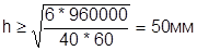 =1.3*37=52мм.