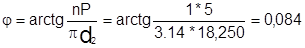 – коэффициент трения из [1] равный 0.12; a – угол наклона рабочей грани витка к торцевой плоскости винта для упорной резьбы равный 3о
