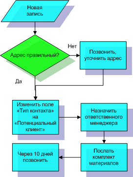 Как правило, любая CRM система поддерживает возможность планирования звонков, важно чтобы была возможность автоматизировать этот процесс. К средствам автоматизации можно отнести возможность создания сценариев телефонных опросов, что позволяет делегировать эту работу менее квалифицированному персоналу и автоматизировать ввод результатов опросов в базу. Другое средство автоматизации – составление типовых правил и бизнес процессов, которые должны отрабатываться в компании. Например, рассмотрим типовой бизнес-процесс привлечения нового клиента. После появления нового клиента в базе, мы можем автоматически связать с ним следующий бизнес-процесс:
