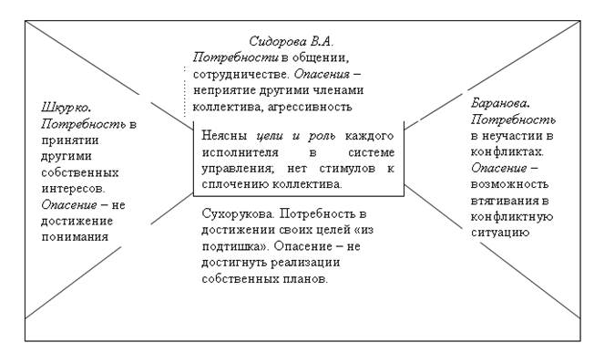 Таким образом, имеет место конфликт в административно – управленческой системе, и конфликт, связанный с функционированием социально – психологической системы.