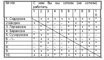 - неодинаковое отношение к членам трудового коллектива, о чем свидетельствует низкий показатель групповой сплоченности, негативное или безразличное, в большинстве своем, отношение членов коллектива друг к другу.
