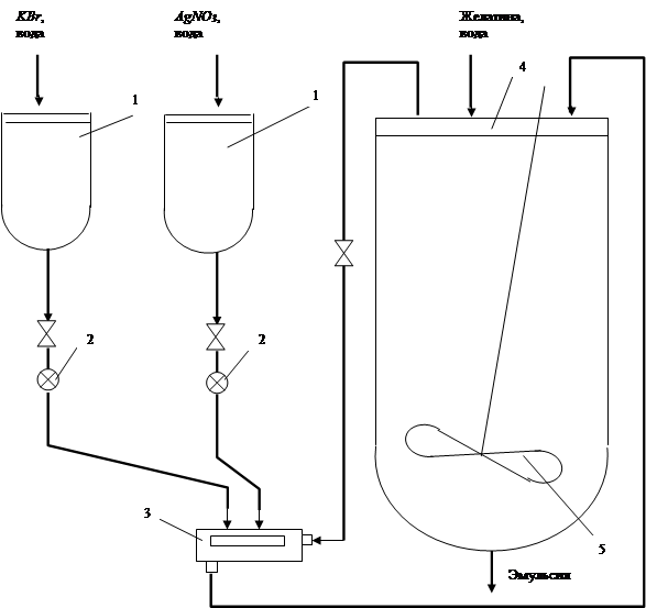 В работе рассмотрена часть процесса промышленного производства фотографической эмульсии. Следует отметить, что полный технологический цикл этого производства состоит из большого количества стадий, и рассмотренный в данной работе процесс представляет собой только совмещенные друг с другом первые две стадии: эмульсификация и первое (физическое) созревание. Процессы студенения, измельчения и полива фотографической эмульсии в данной работе не рассматриваются из-за того, что для каждого из них необходима своя локальная система, а для координации работы необходимо использовать систему управления более высокого уровня в иерархии управления.