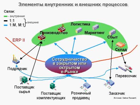 . ERP-системы способствуют тому, что производственный процесс протекает более гладко, улучшается процесс исполнения заказа внутри компании. Компания теперь может запасать меньше сырья, необходимого для производства продукта, и хранить меньше готовой продукции на складах. Для того чтобы радикально улучшить всю цепочку поставок, может использоваться специальный модуль SCM (Supply Chain Management – управление цепочками поставок), который сегодня входит в стандартную конфигурацию большинства ERP-систем.