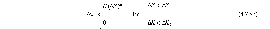 DELTA x = left { lpile{ C( DELTA K ) sup m above above 0} for lpile{ DELTA K > DELTA K sub 0 above above DELTA K < DELTA K sub 0}