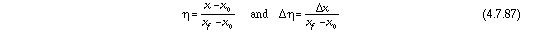 eta = {x - x sub 0}over{x sub f - x sub 0} and DELTA eta = {DELTA x}over{x sub f - x sub 0}