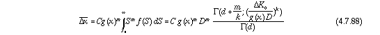 {DELTA x}bar = C g(x) sup m int from{S sub 0} to inf S sup m f(S) dS = C g(x) sup m D sup m { GAMMA (d + m over k ; ({DELTA K sub 0}over{g(x) D}) sup k )} over{GAMMA (d)}