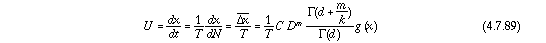 U = dx over dt = 1 over T dx over dN = {{DELTA x}bar}over T = 1 over T C D sup m {GAMMA (d + m over k }over{GAMMA (d)} g(x)