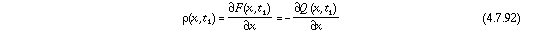 rho (x, t sub 1 ) = {partial F(x, t sub 1 )}over{partial x} = - {partial Q(x, t sub 1 )}over{partial x}