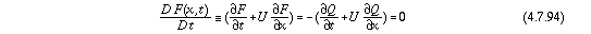 {D F(x, t)}over{D t} \(== ({partial F}over{partial t} + U {partial F}over{partial x}) = - ({partial Q}over{partial t} + U {partial Q}over{partial x}) = 0