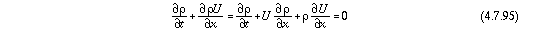 {partial rho}over{partial t} + {partial rho U}over{partial x} = {partial rho}over{partial t} + U {partial rho}over{partial x} + rho {partial U}over{partial x} = 0