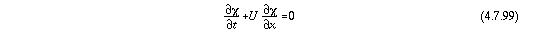 {partial chi}over{partial t} + U {partial chi}over{partial x} = 0