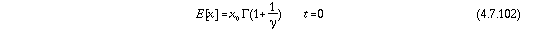 E[x] = x sub 0 GAMMA (1 + 1 over gamma ) t = 0