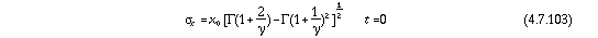 sigma sub x = x sub 0 [ GAMMA (1 + 2 over gamma ) - GAMMA (1 + 1 over gamma ) sup 2 ] sup{1 over 2} t = 0