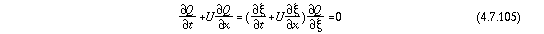 {partial Q}over{partial t} + U{partial Q}over{partial x} = ( {partial xi}over{partial t} + U{partial xi}over{partial x} ) {partial Q}over{partial xi} = 0