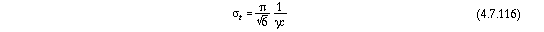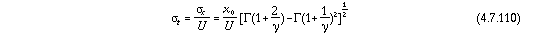 sigma sub t = {sigma sub x}over U = {x sub 0}over U [ GAMMA (1 + 2 over gamma ) - GAMMA (1 + 1 over gamma ) sup 2 ] sup{1 over 2}