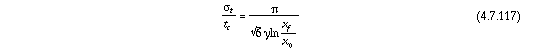 {sigma sub t}over{t sub c} = pi over{sqrt 6 gamma ln {x sub f}over{x sub 0}}