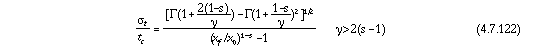 {sigma sub t}over{t sub c} = { [ GAMMA (1 + 2(1-s) over gamma ) - GAMMA (1 + 1-s over gamma ) sup 2 ] sup 1/2} over{( x sub f / x sub 0 ) sup 1-s - 1} gamma > 2(s - 1)