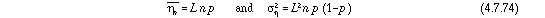 {eta sub n}bar = L n p and sigma sub eta sup 2 = L sup 2 n p (1 - p)