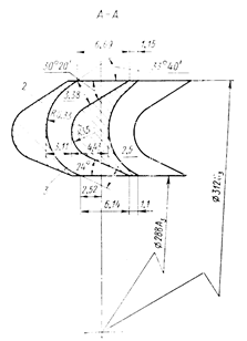 В средней части лопаток имеются заплечики, входящие в кольцевые пазы покрывных дисков, а в верхней части - выступы, которые расклепываются в прорезях покрывных дисков. Для предотвращения смещения и вибрации лопаток заплечики вводятся в кольцо с прорезями. Число лопаток в колесах такой конструкции было значительным - 36 длинных и 36 коротких. Стрелка и покрывные диски изготовлялись из поковок нержавеющей стали, а лопатки из листового проката этой же стали.