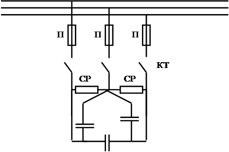 Рис. 12. Схема включения батарей конденсаторов на 10 кВ.