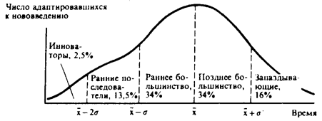 Потребители этих пяти категорий сильно отличаются друг от друга. Инноваторы - это те, кто охотно принимают новые идеи и готовы идти на риск. Ранние последователи ищут респектабельности, они являются признанными лидерами в своей среде; принимают новинки быстро, но с осторожностью. Представители раннего большинства неторопливы; они редко являются лидерами, но воспринимают товары раньше среднего потребителя. Представители позднего большинства настроены скептически. Они принимают новинки только после того, как большинство их уже испробовало. И наконец, отстающие - это приверженцы традиции. Они с подозрением относятся к любым изменениям и принимают их только после того, как новое «перестанет быть слишком новым» и войдет в традицию.
