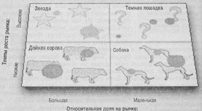 относятся к фазе насыщения и дегенерации. Они не имеют ни большой доли рынка, ни высоких темпов роста. Они могут приносить достаточный доход для поддержания самих себя, но не обещают стать более серьезными источниками дохода. Пока они приносят прибыль, рекомендуется инвестировать ее в «темных лошадок» или в «звезды». При наступлении опасности, что эти товары попадут в зону убытка, их следует снять с производства.