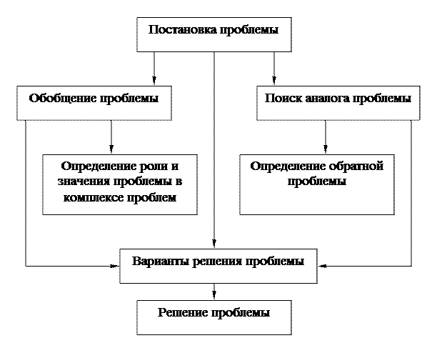 Сформулировать обратную проблему. Это бывает очень полезно, так как может подсказать решение, навести исследователя на удачный вариант. Например, компьютеризация деятельности менеджера снижает действие человеческого фактора управления, а это отрицательно сказывается на эффективности управления при любом уровне его технической вооруженности. Такая формулировка обратной проблемы позволяет увидеть опасность неудачных решений, установить критерии выбора успешных решений.