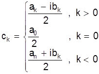 Комплексная форма ряда Фурье удобнее в обращении при теоретических исследованиях, но вычисления проводятся с действительной формой. В комплексной форме существуют и положительные и отрицательные частоты: для каждой положительной частоты мы заменили две функции, синус и косинус, единой экспоненциальной, но имеющей как положительную, так и отрицательную частоту.