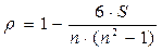 Сумма квадратов разностей рангов S вычисляется по формуле