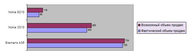Итак, видно, что ноябрьские итоги объемов продаж могли бы быть выше: у телефонов Siemens A35 на 1,9 %, Nokia 3310 – на 7,3 % , Nokia 8210 – на 32%. Заметно, что программа делает основной упор на повышение количества продаж более дорогих и потому менее продаваемых телефонных аппаратов. Данные результаты должны достигаться развитием факторов стимулирующих сбыт товаров.